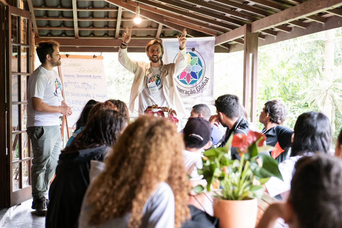 Na Oficina Regeneração do Planeta, Fabiano Porto, que está à frente do Instituto Regeneração Global, propôs uma dinâmica em que os alunos foram divididos em pequenos grupos. Cada grupo recebeu três cartas com soluções para regenerar o planeta e foi provocado a escolher uma. “Especialmente depois do ápice da pandemia temos um novo campo se abrindo”, destacou Fabiano em referências às iniciativas que apresentam soluções para regenerar o planeta. Cada grupo foi provocado a compartilhar porque escolheu determinada solução. Na sequência, Fabiano contou aos alunos mais detalhes sobre a iniciativa que atua naquela direção.