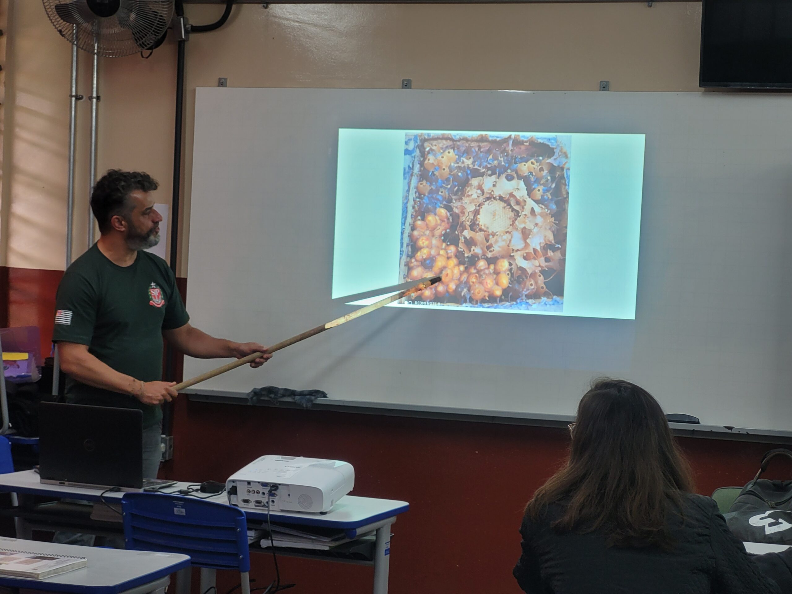 Nas duas oficinas Renan Matzner e Tabata Marinangelo, estudantes de Engenharia Florestal e estagiários do Projeto Semeando Água, uma iniciativa do IPÊ, patrocinado pela Petrobras, por meio do programa Petrobras Socioambiental, apresentaram aos alunos as oportunidades de negócios baseados na bioeconomia. Além da produção de mel e arte, outros produtos originados da floresta podem ser uma fonte de renda advinda da conservação da biodiversidade – como resinas, óleos, ervas medicinais, polpa de frutas nativas da Mata Atlântica. Matzner e Marinangelo destacaram a importância da conservação do meio ambiente e de práticas sustentáveis no município de Nazaré Paulista, onde parte da água que abastece milhões de pessoas é gerada e armazenada na represa Atibainha.