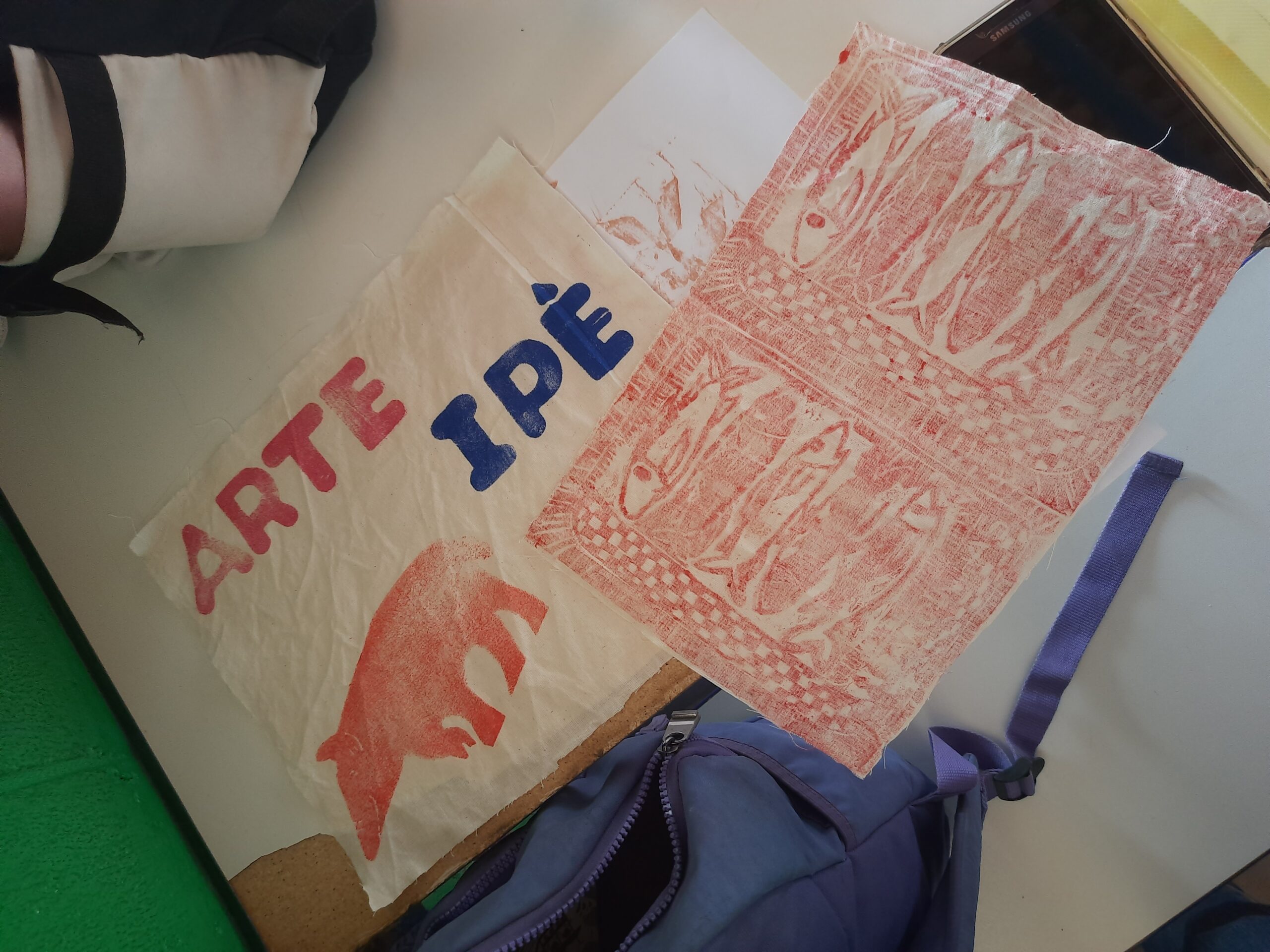 Os participantes iniciaram a oficina experimentando carimbos trazidos pela instrutora e também esculpiram seus próprios carimbos, desenhando mosaicos em papel com diferentes cores. Como continuidade os alunos experimentaram outros materiais e estamparam tecidos, técnica que pode ser utilizada tanto para a criação de arte quanto de moda sustentável. A oficina foi finalizada com uma apresentação teórica sobre a definição, origens e tipos de xilogravura. Os trabalhos feitos pelos participantes, que tiveram seu despertar artístico e empreendedorismo estimulados, foram exibidos em espaços coletivos das escolas.